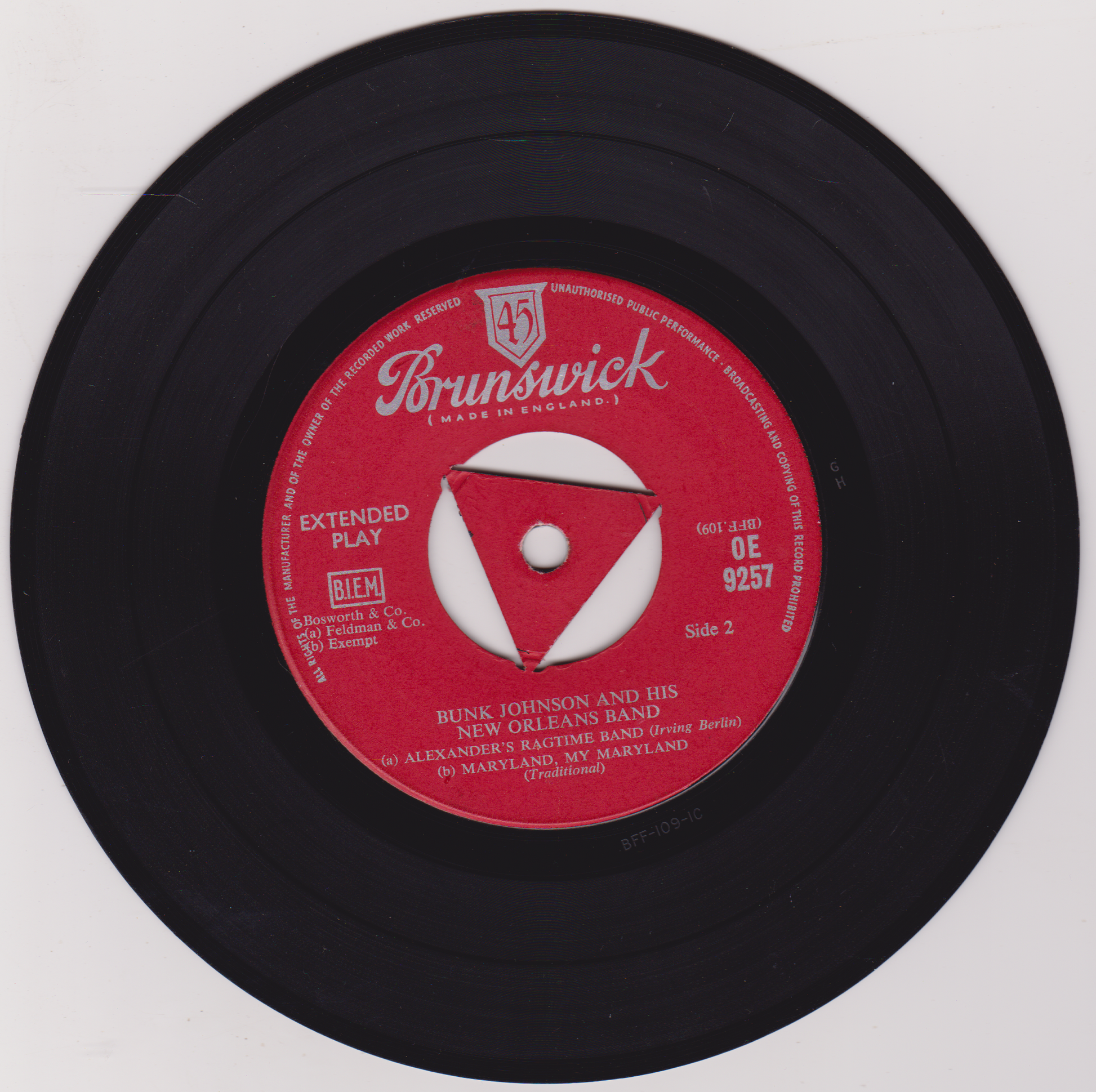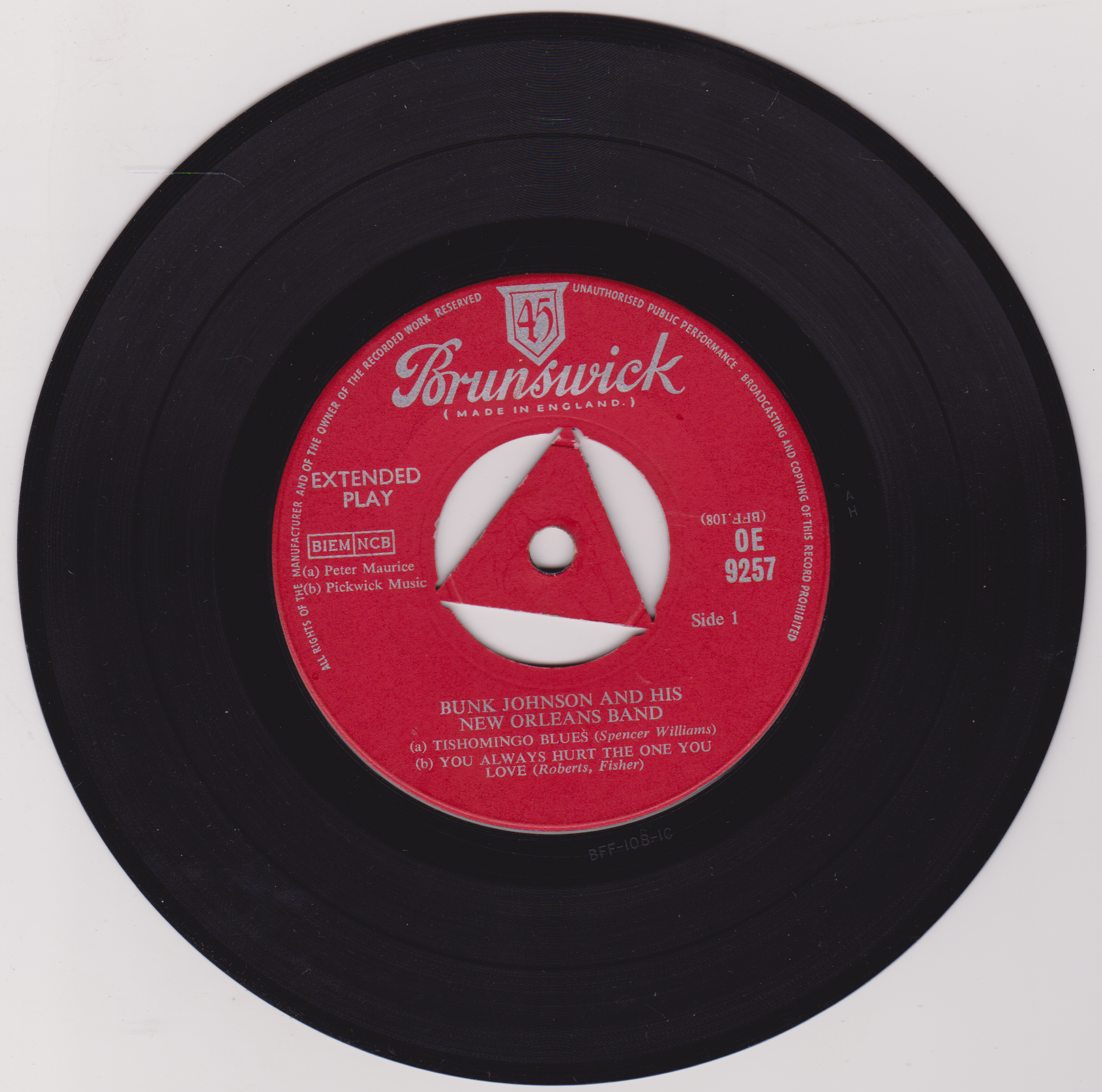 Bunk Johnson And His New Orleans Band – Tishomingo Blues (Brunswick 1956) 7" vinyl EP VG/G+