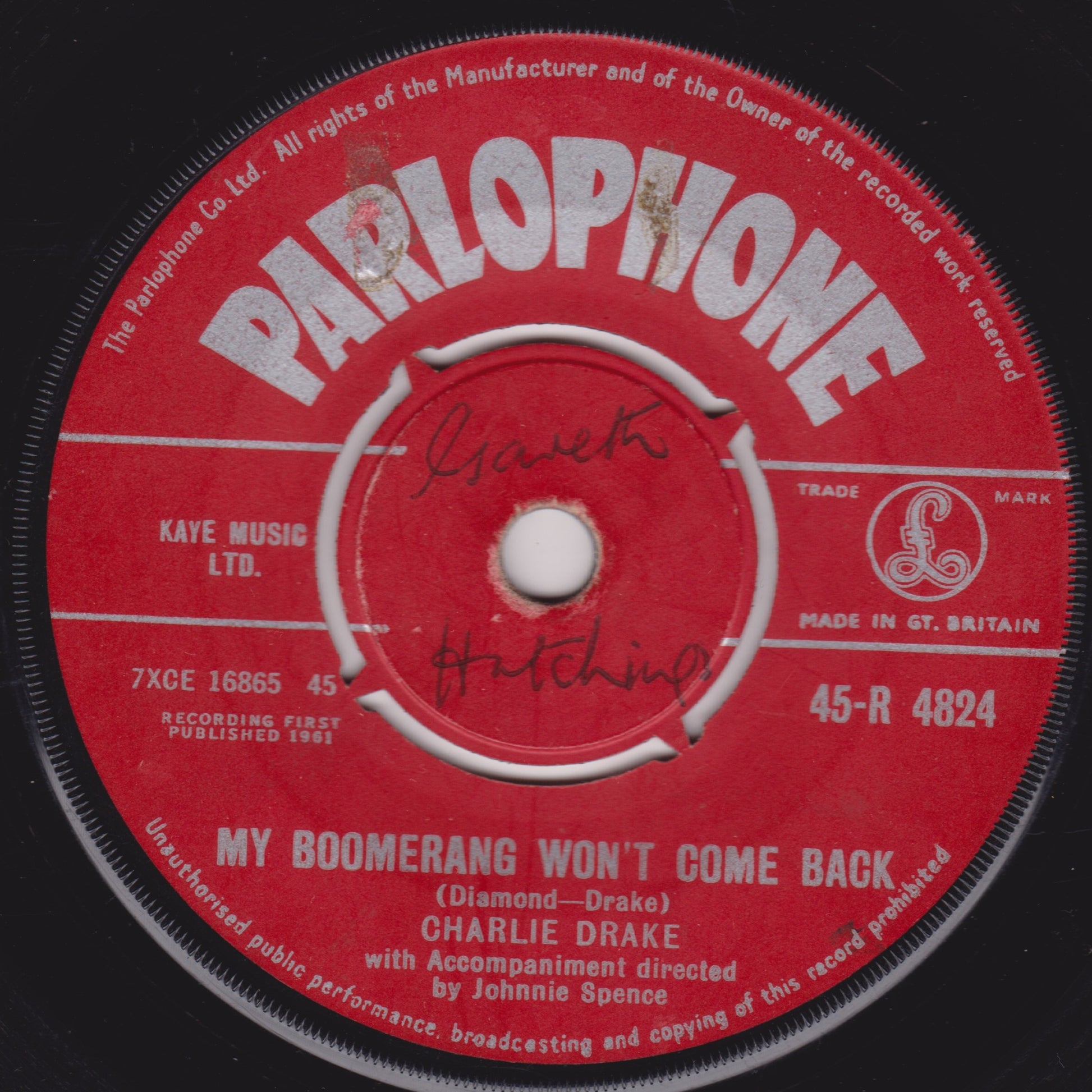 Charlie Drake – My Boomerang Won't Come Back (Parlophone 1961) 7" vinyl single G+/-