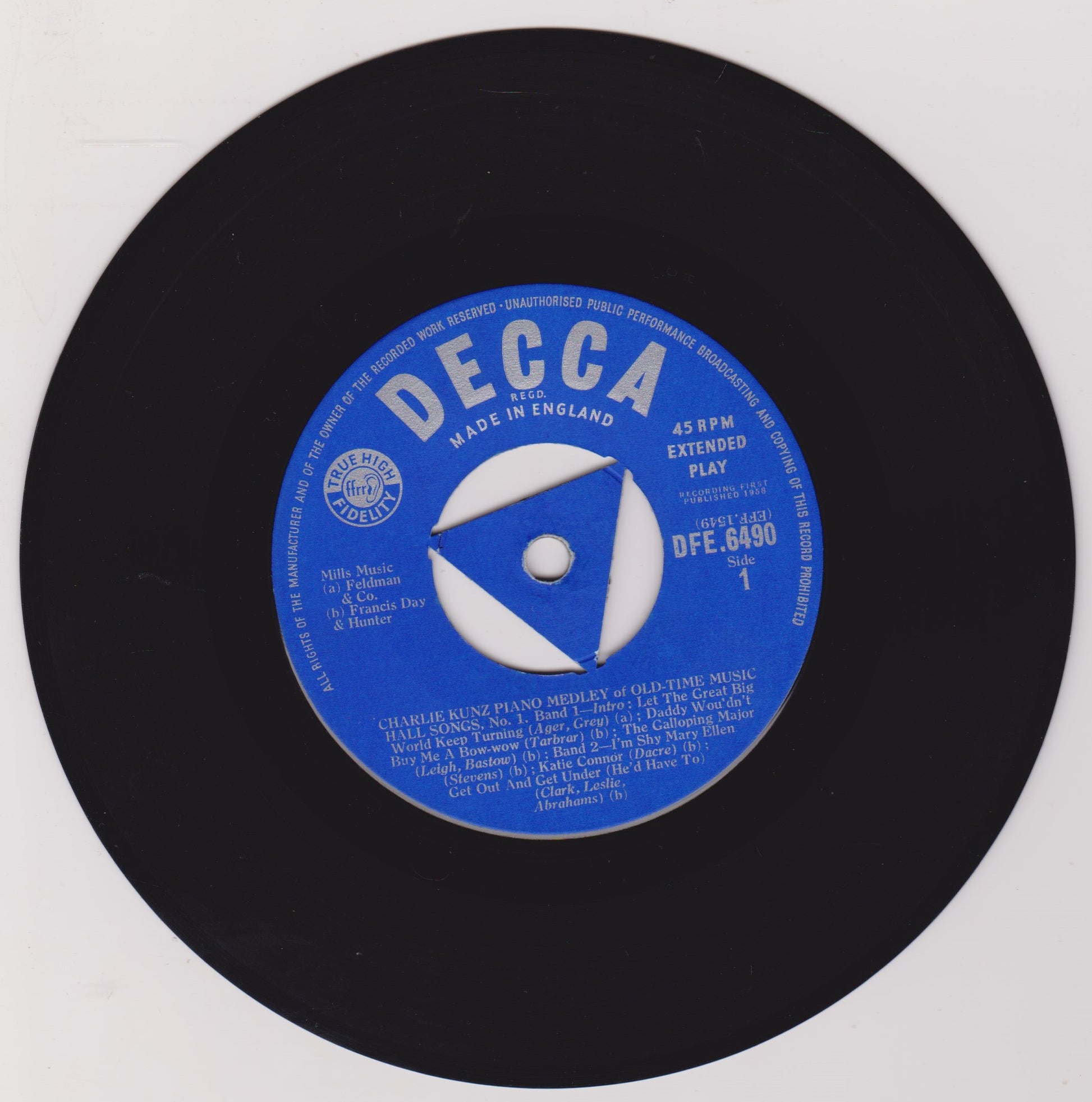 Charlie Kunz – Old Time Music Hall Songs No. 1 (Decca 1958) 7" vinyl P/S EP VG/VG