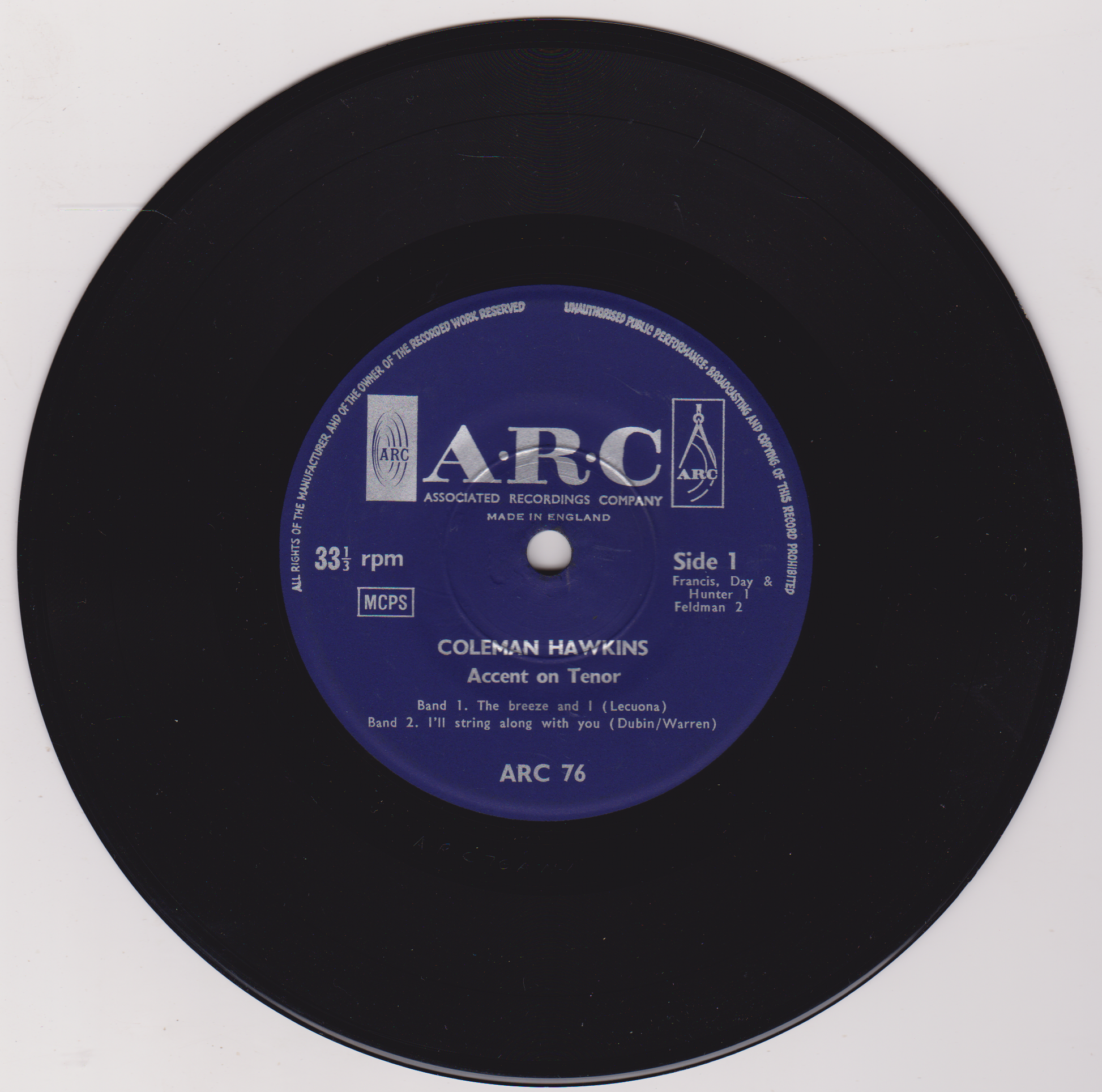 Coleman Hawkins – Accent On Tenor (ARC 1965) 7" vinyl EP VG/VG 33rpm