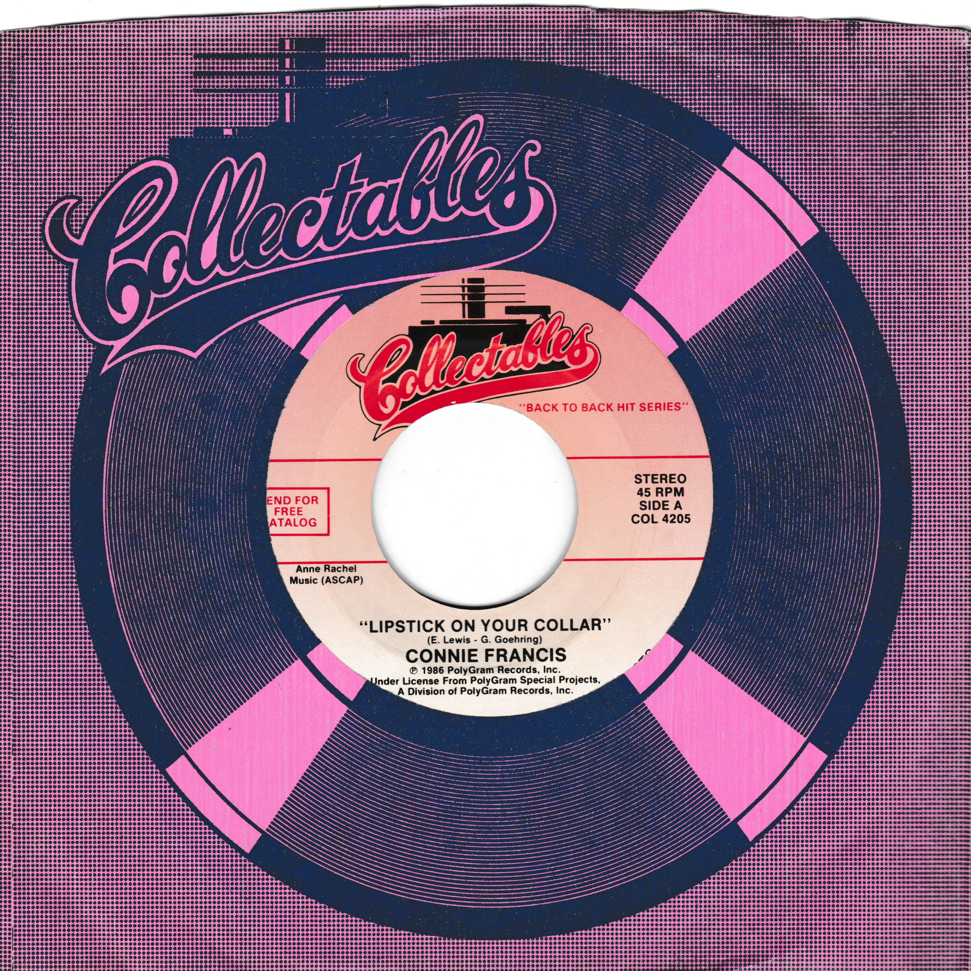 Connie Francis – Lipstick On Your Collar (Collectables 1986) 7" vinyl US single VG/VG jukebox centre