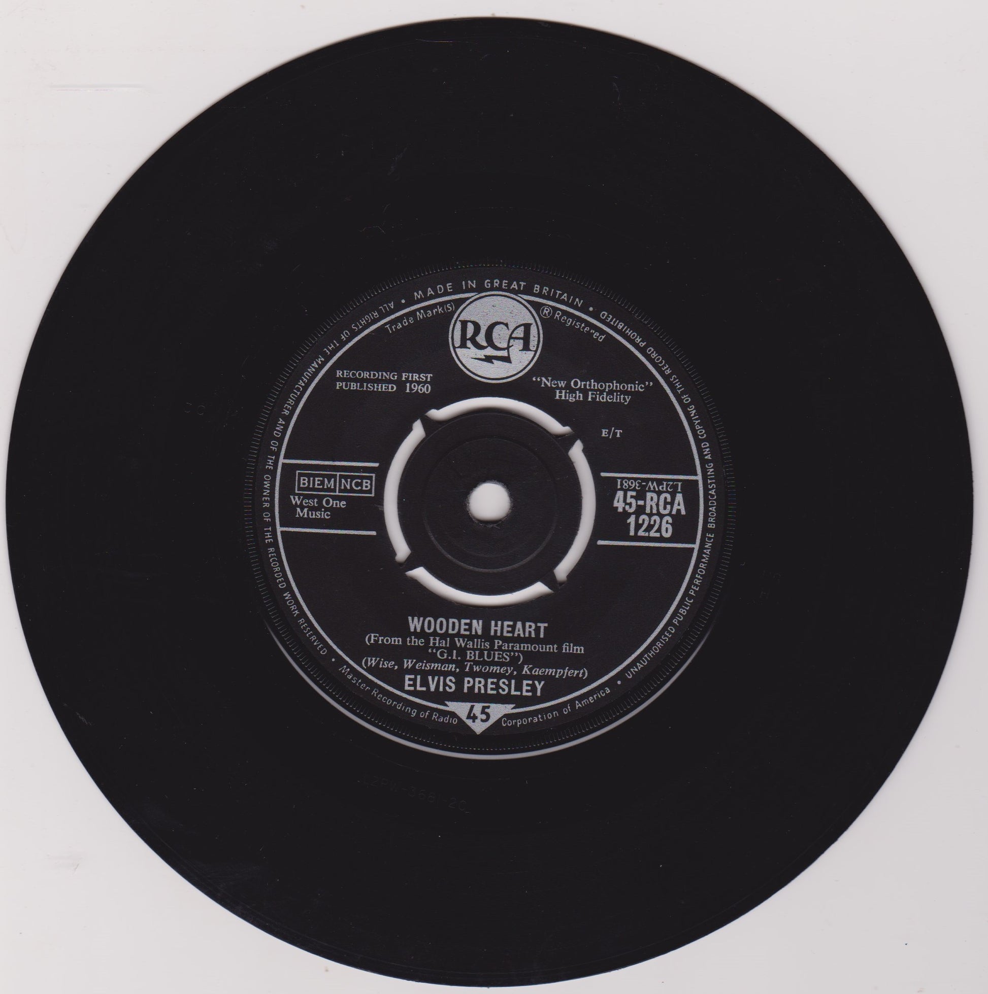 Elvis Presley - Wooden Heart (RCA 1961) 7" vinyl single VG/VG