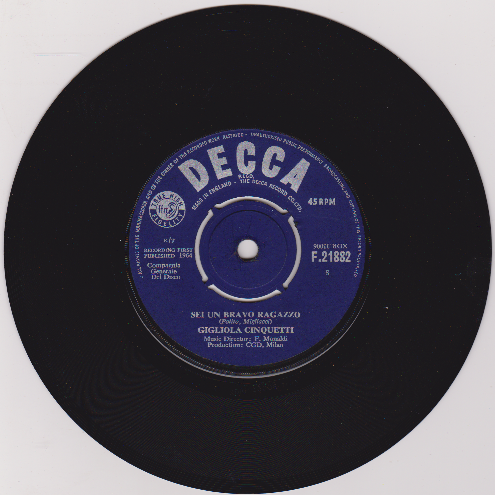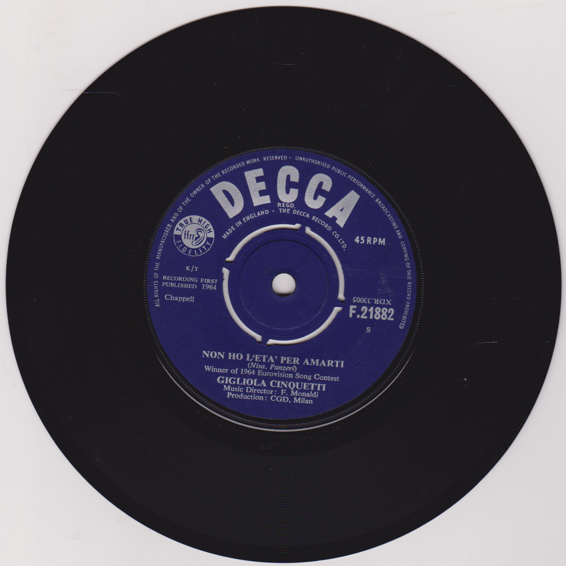 Gigliola Cinquetti – Non Ho L'Eta' Per Amarti (Decca 1964) 7" vinyl single VG/-