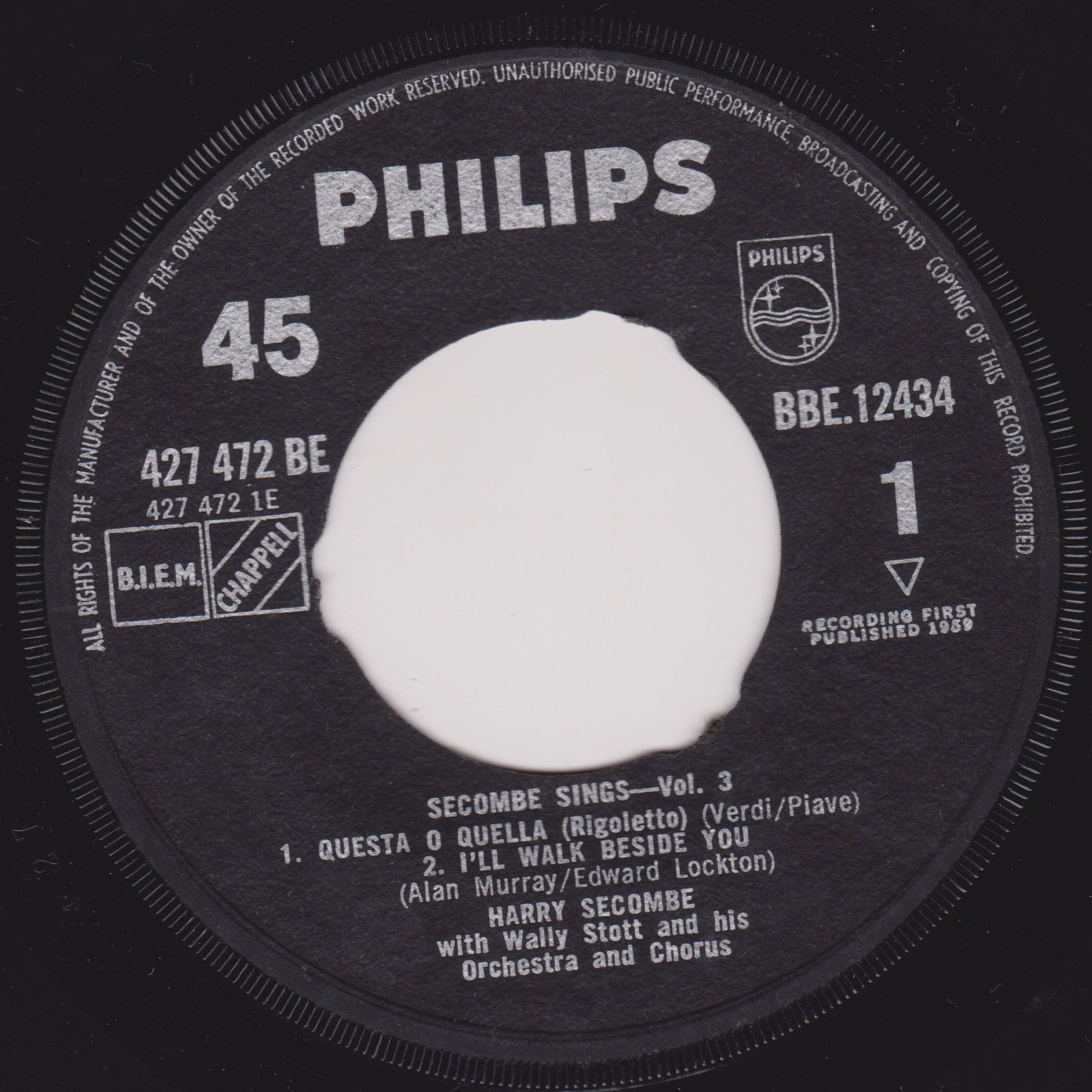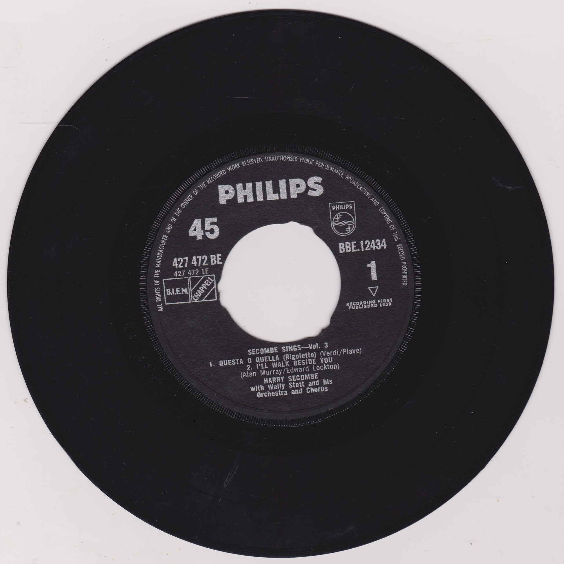Harry Secombe - Secombe Sings Vol. 3 (Philips, 1959) 7" vinyl EP G+/- jukebox centre
