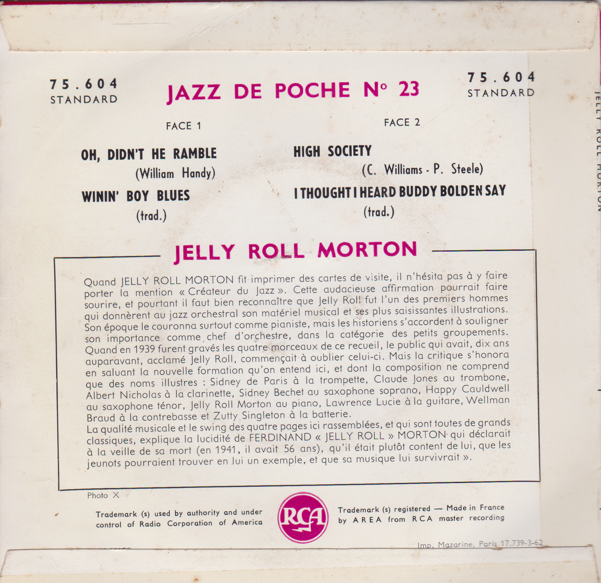 Jelly Roll Morton – Jazz De Poche N° 23 (RCA 1960) 7" vinyl EP VG/VG France