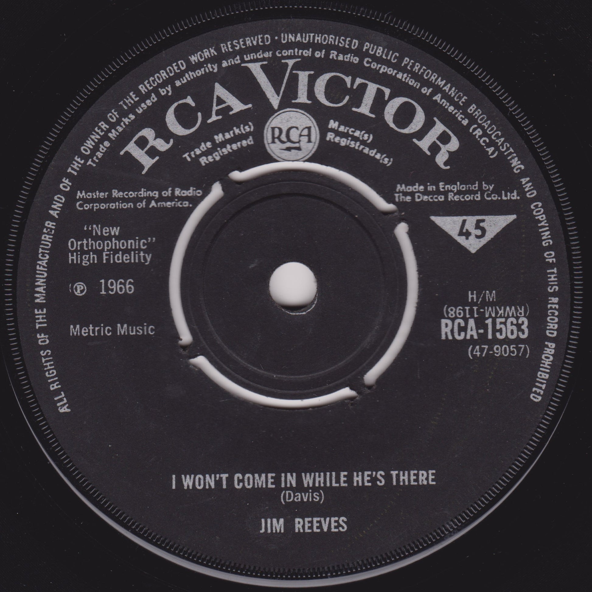 Jim Reeves – I Won't Come In While He's There (RCA 1966) 7" vinyl single VG/-