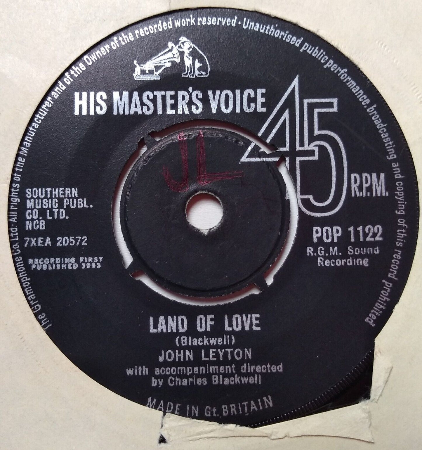 John Leyton - Cupboard Love (HMV 1963) 7" vinyl single VG/-