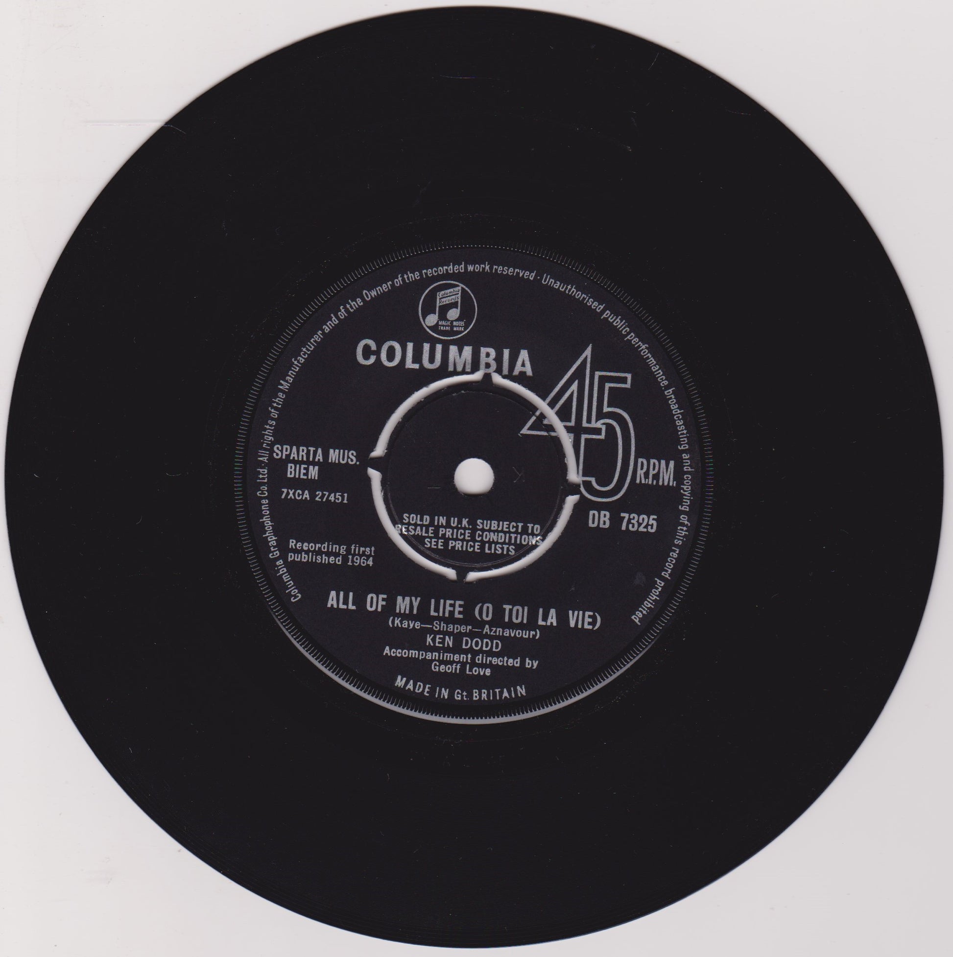 Ken Dodd - Happiness (Columbia 1964) 7" vinyl single VG/VG