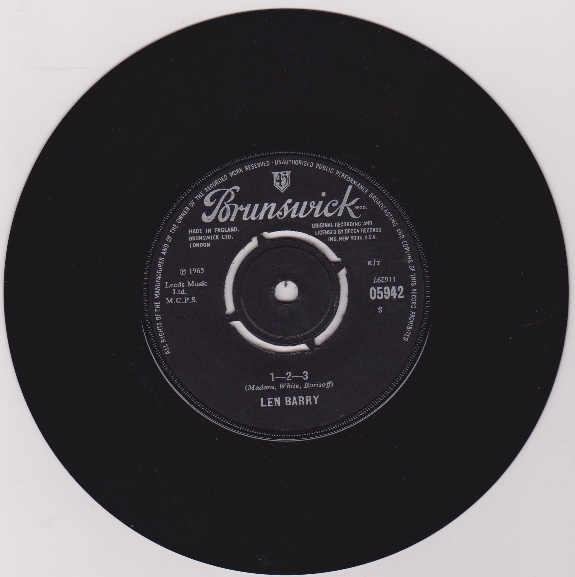 Len Barry – 1-2-3 (Brunswick 1965) 7" vinyl single VG/VG