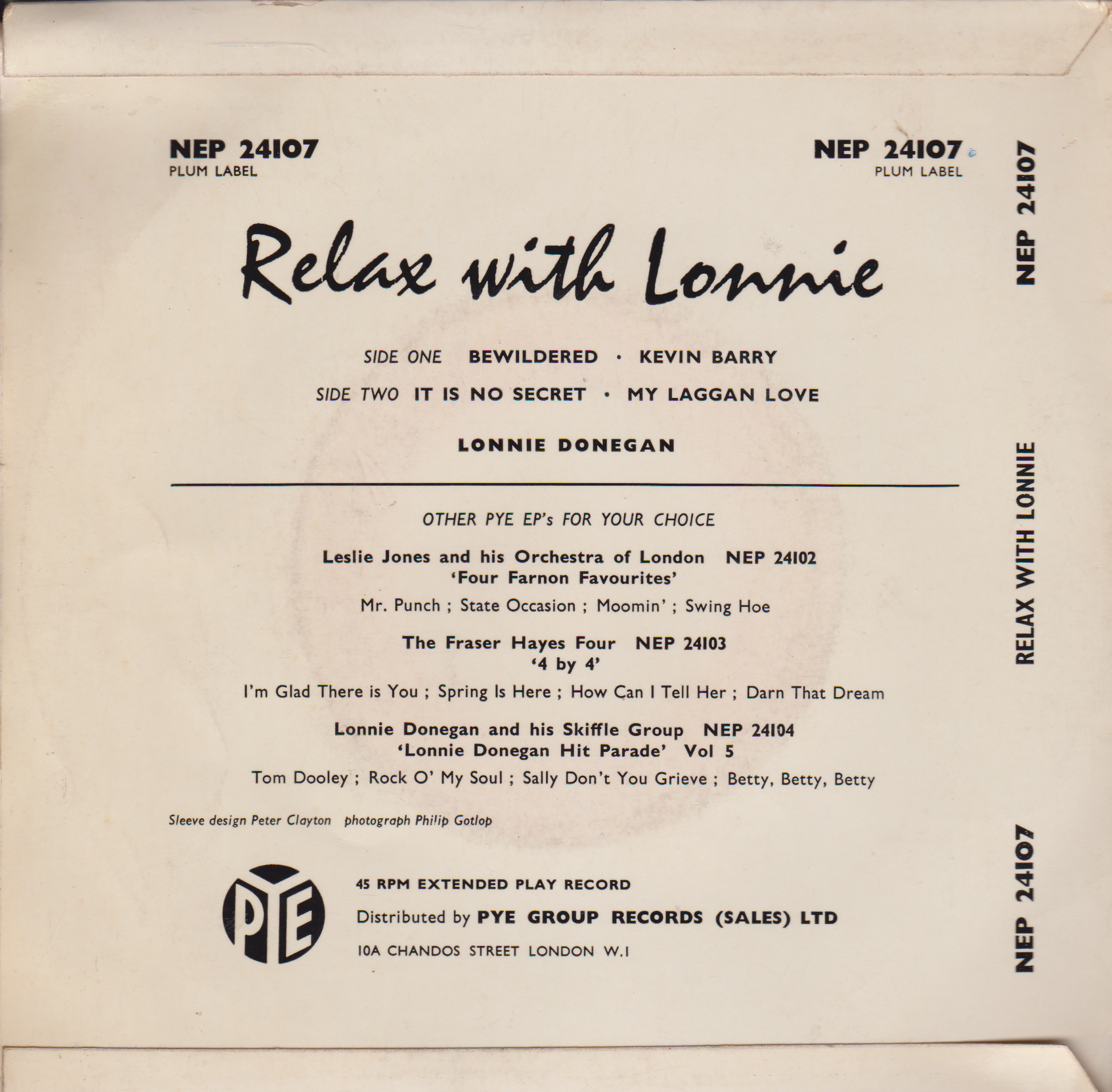 Lonnie Donegan - Relax With Lonnie (Pye) 7" vinyl EP G+/VG
