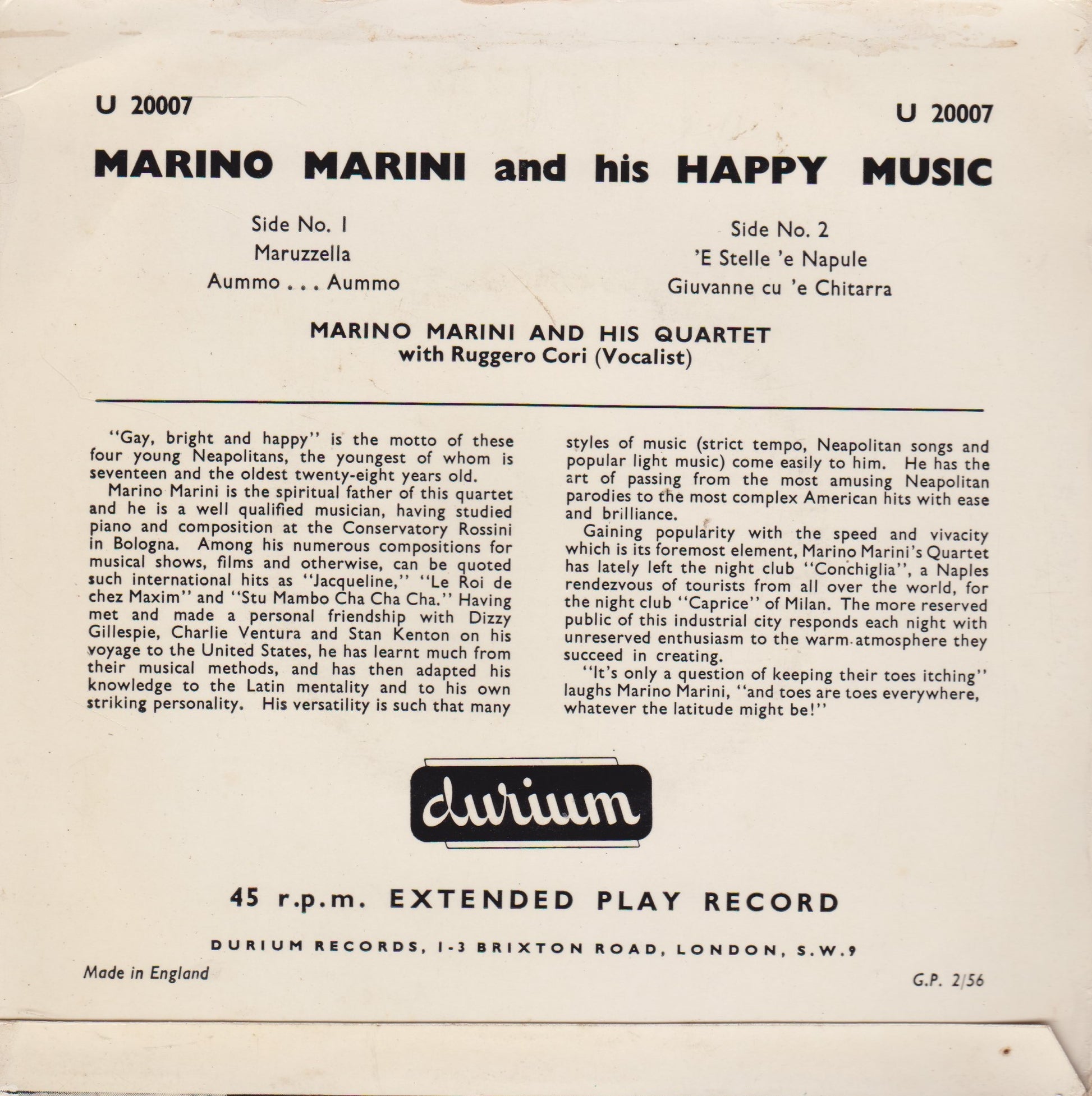 Marino Marini And His Quartet – Marino Marini And His Happy Music 7" vinyl P/S EP G+/VG