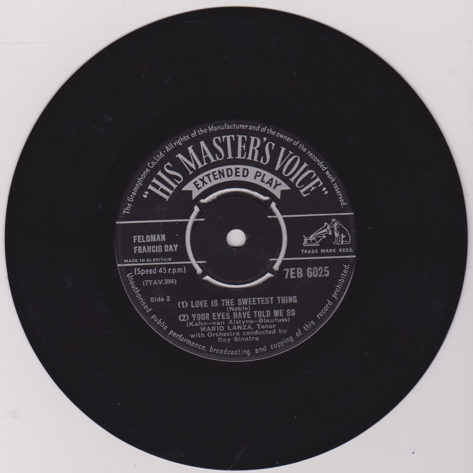 Mario Lanza – Romance In Song (HMV 1956) 7" vinyl P/S EP VG/VG