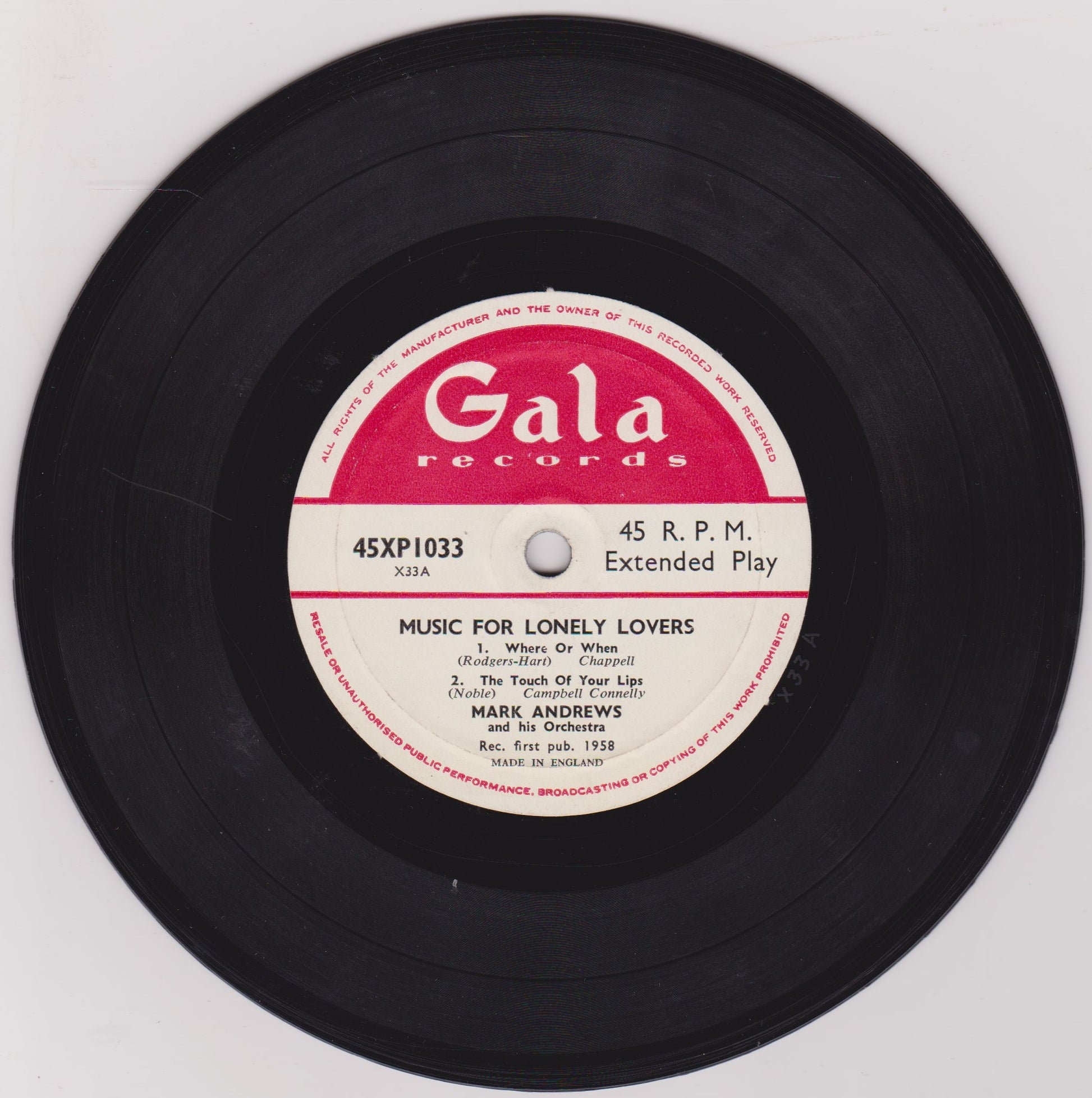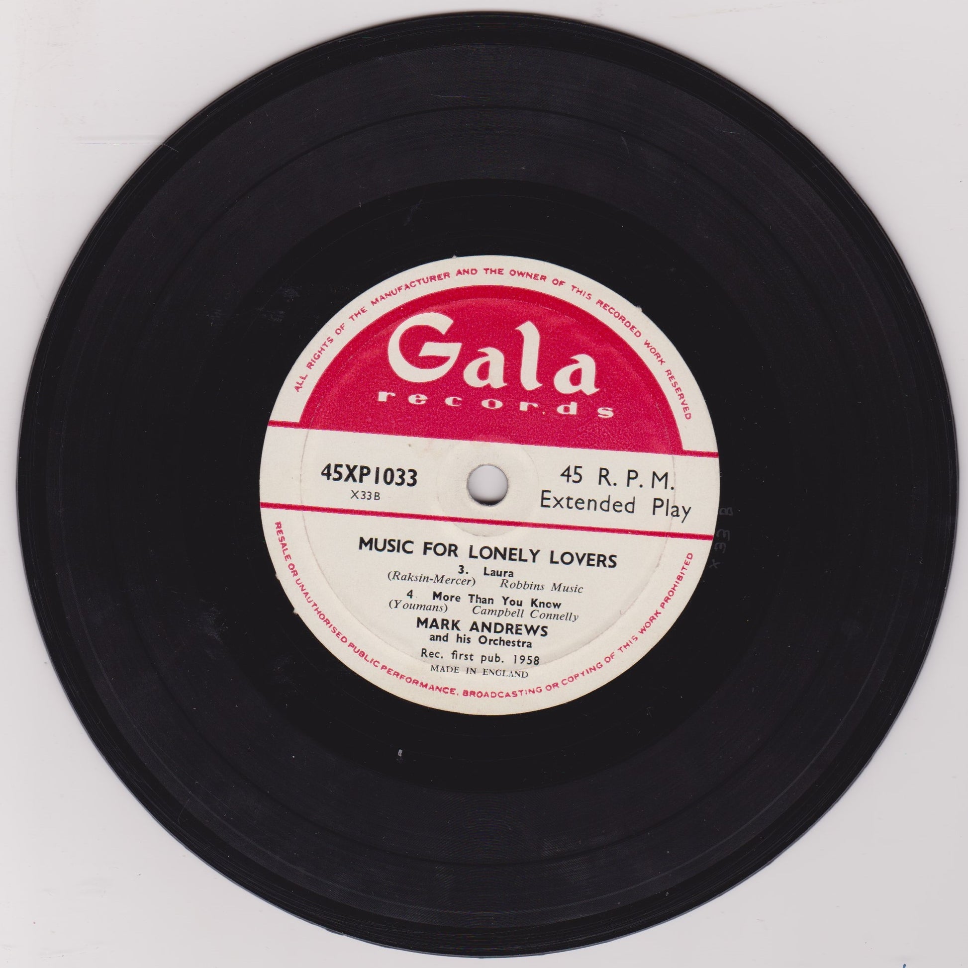 Mark Andrews & His Orchestra – Music For Lonely Lovers 7" vinyl P/S EP VG/VG