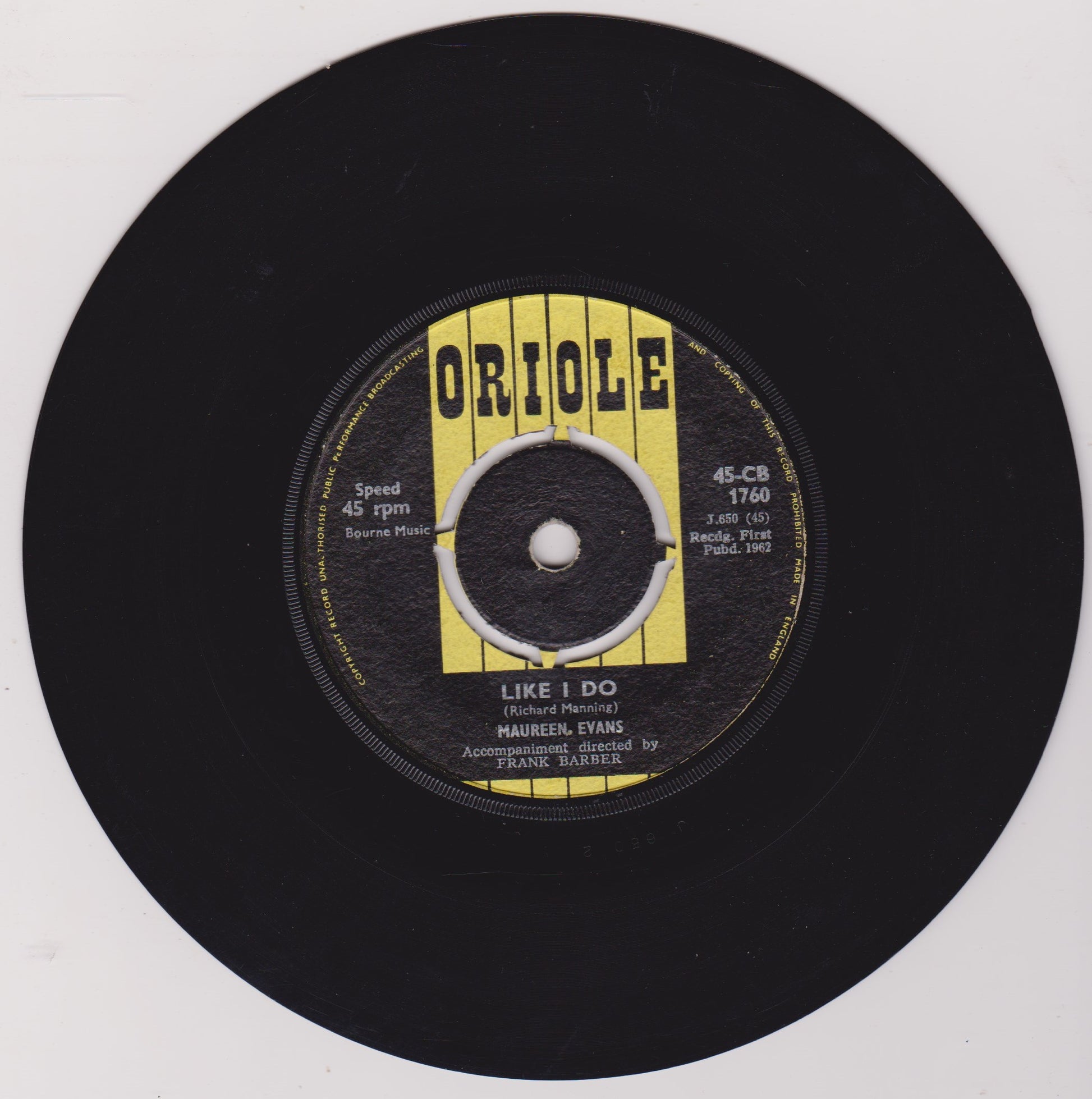 Maureen Evans – Like I Do (Oriole 1962) 7" vinyl single VG/-