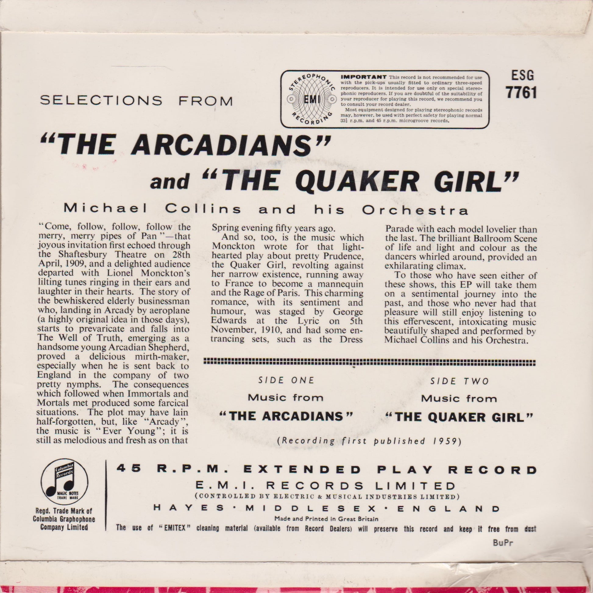 Michael Collins And His Orchestra – Selections From "The Arcadians" And "The Quaker Girl" 7" EP VG/VG