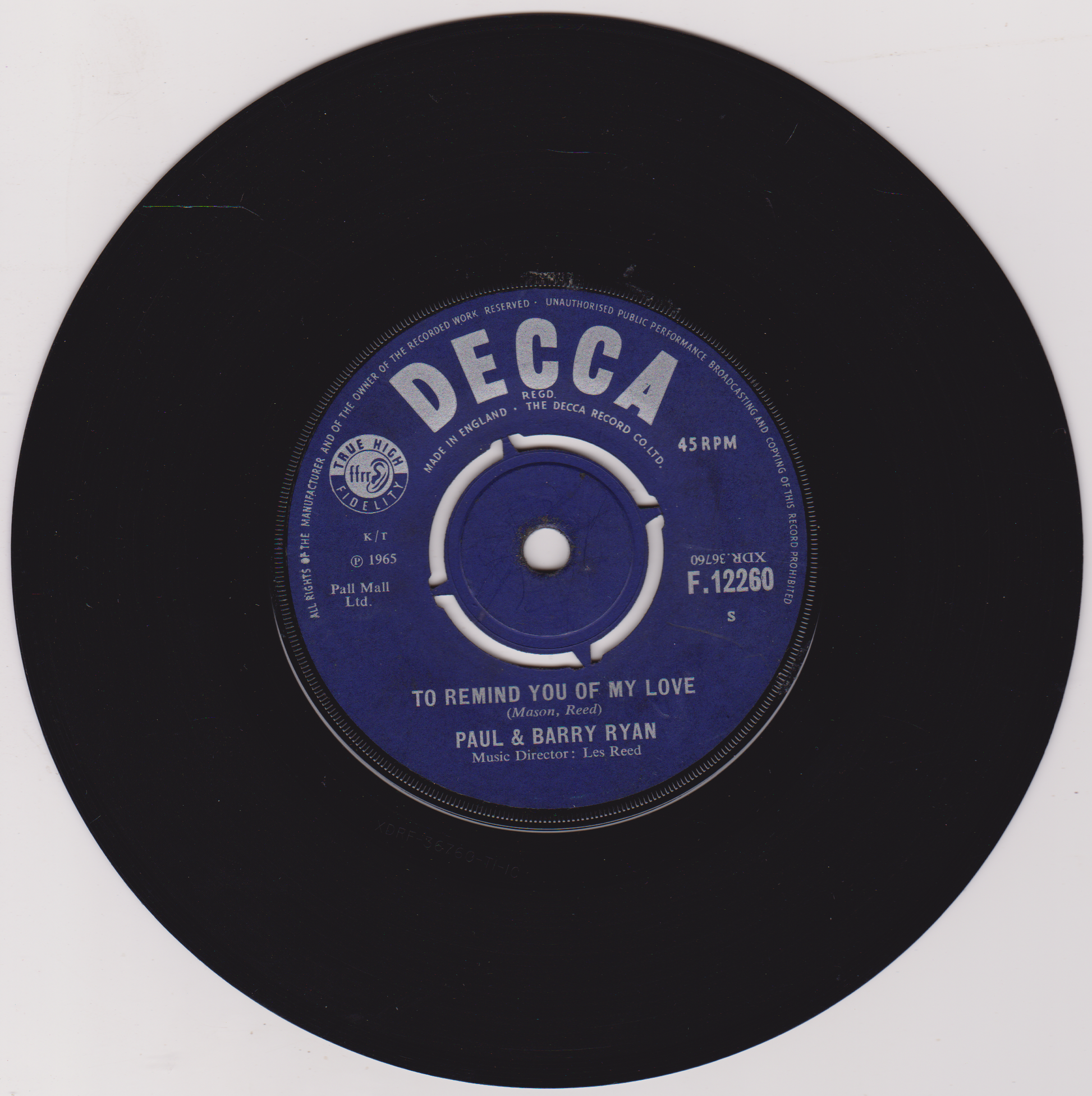 Paul & Barry Ryan – Don't Bring Me Your Heartaches (Decca 1965) 7" vinyl single VG/VG