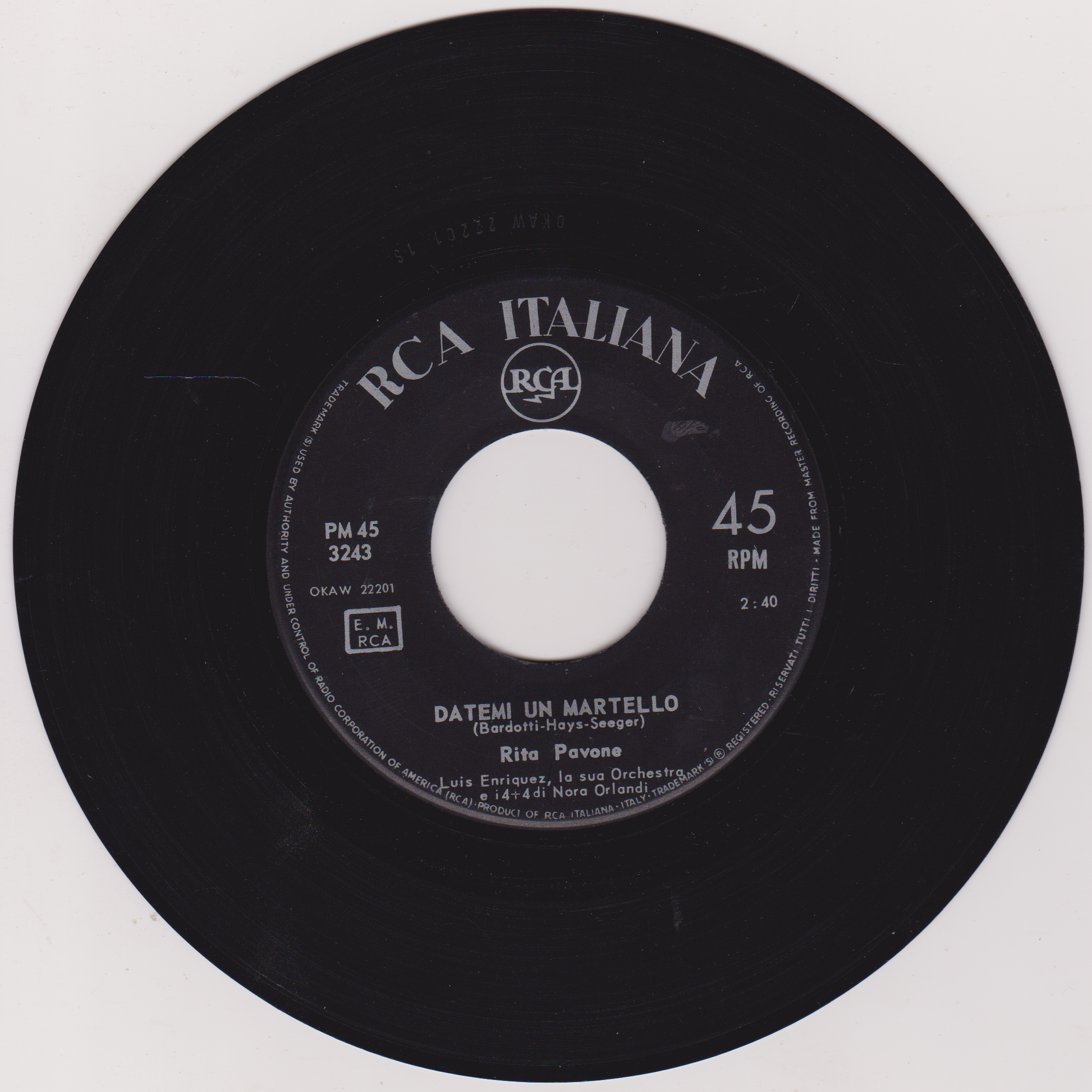 Rita Pavone – Datemi Un Martello (Give Me A Hammer) (RCA Italiana 1963) 7" vinyl single VG/-