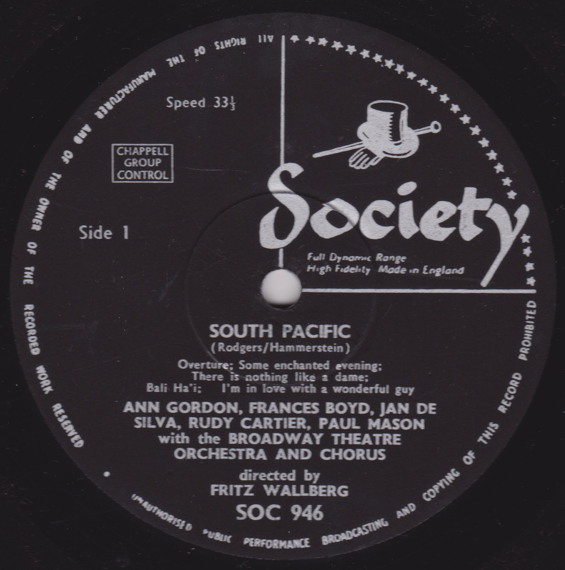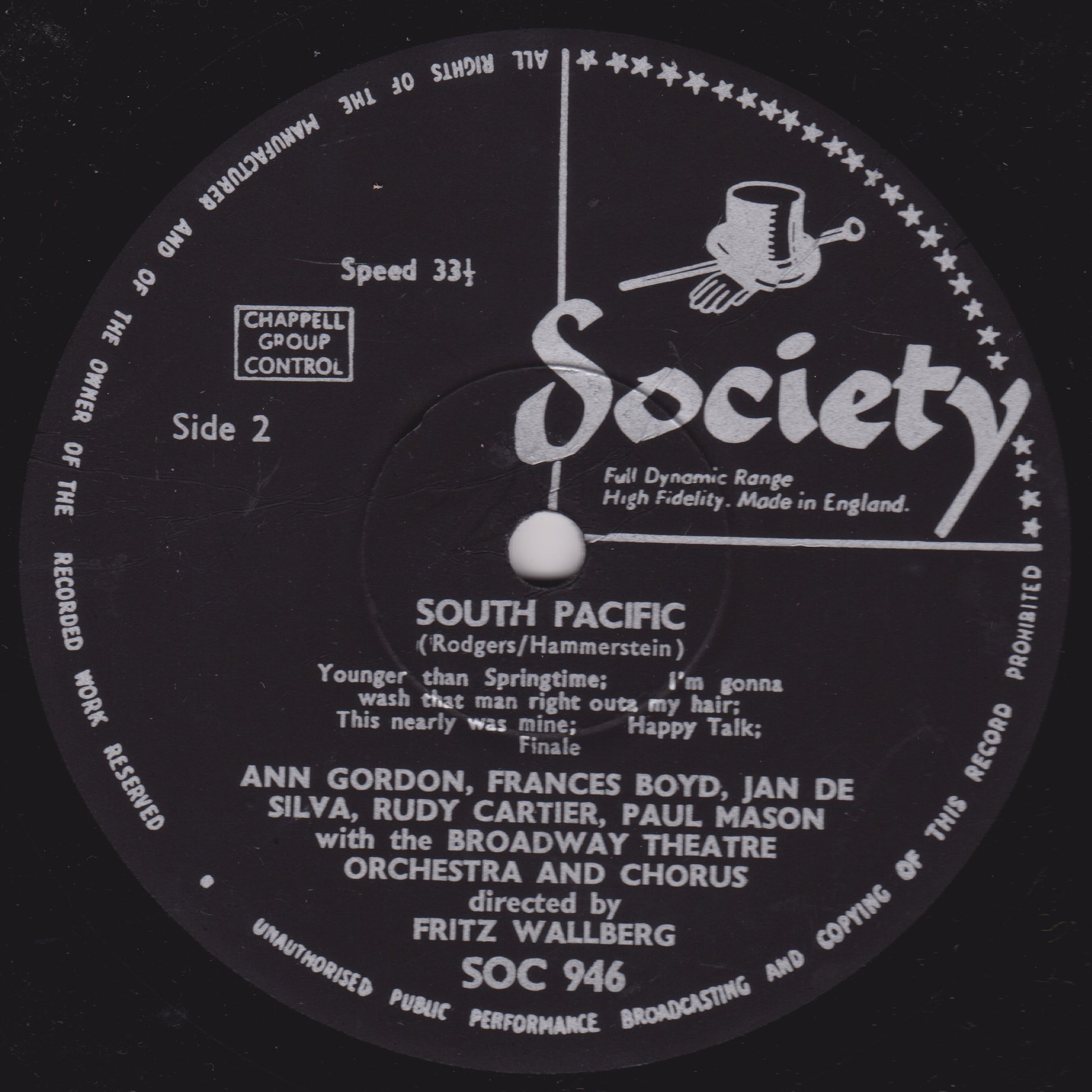Rodgers And Hammerstein - South Pacific (Society) 12" vinyl LP VG/G+