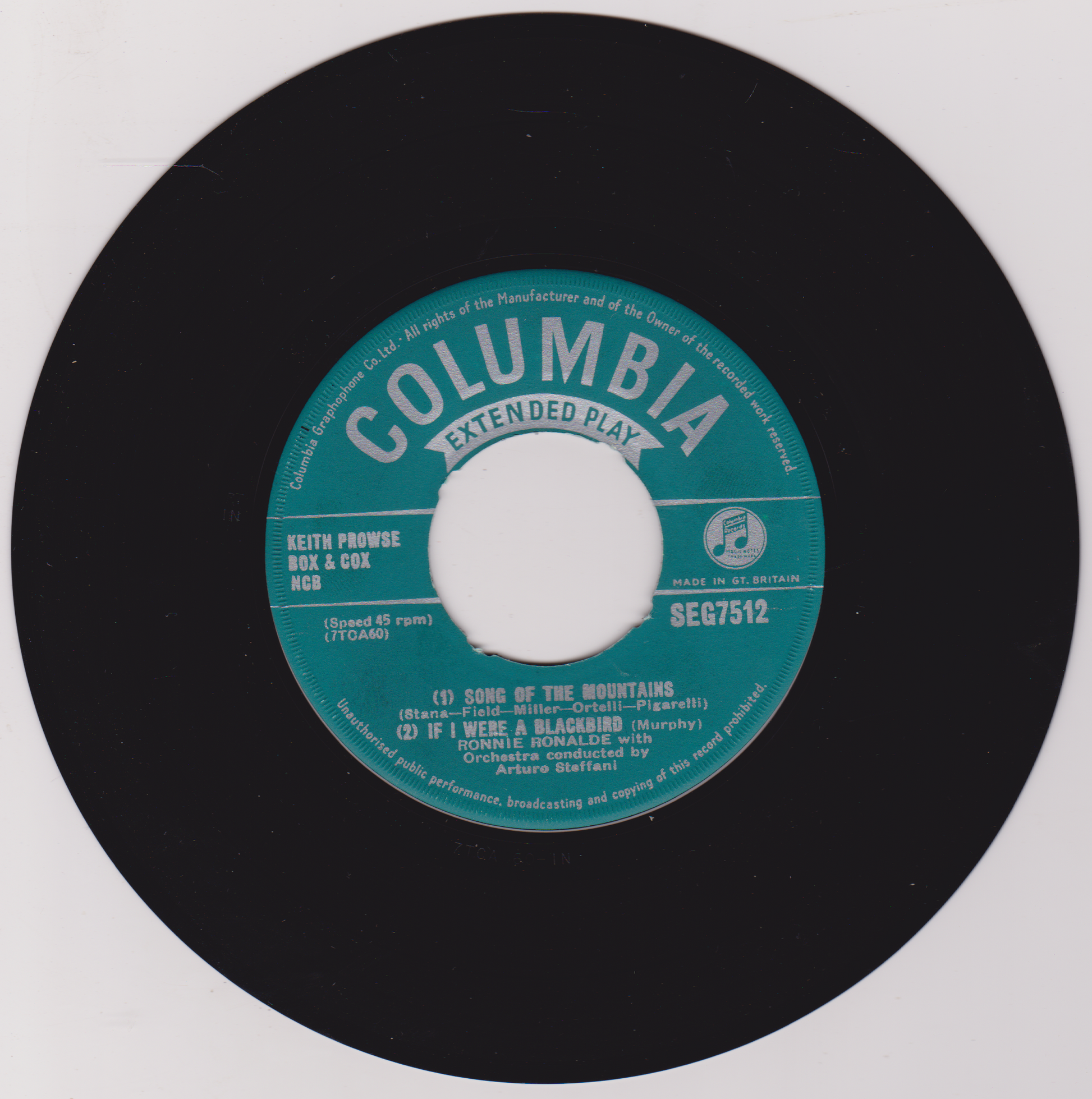 Ronnie Ronalde - Song Of The Mountains (Columbia 1954) 7" vinyl EP VG/VG jukebox