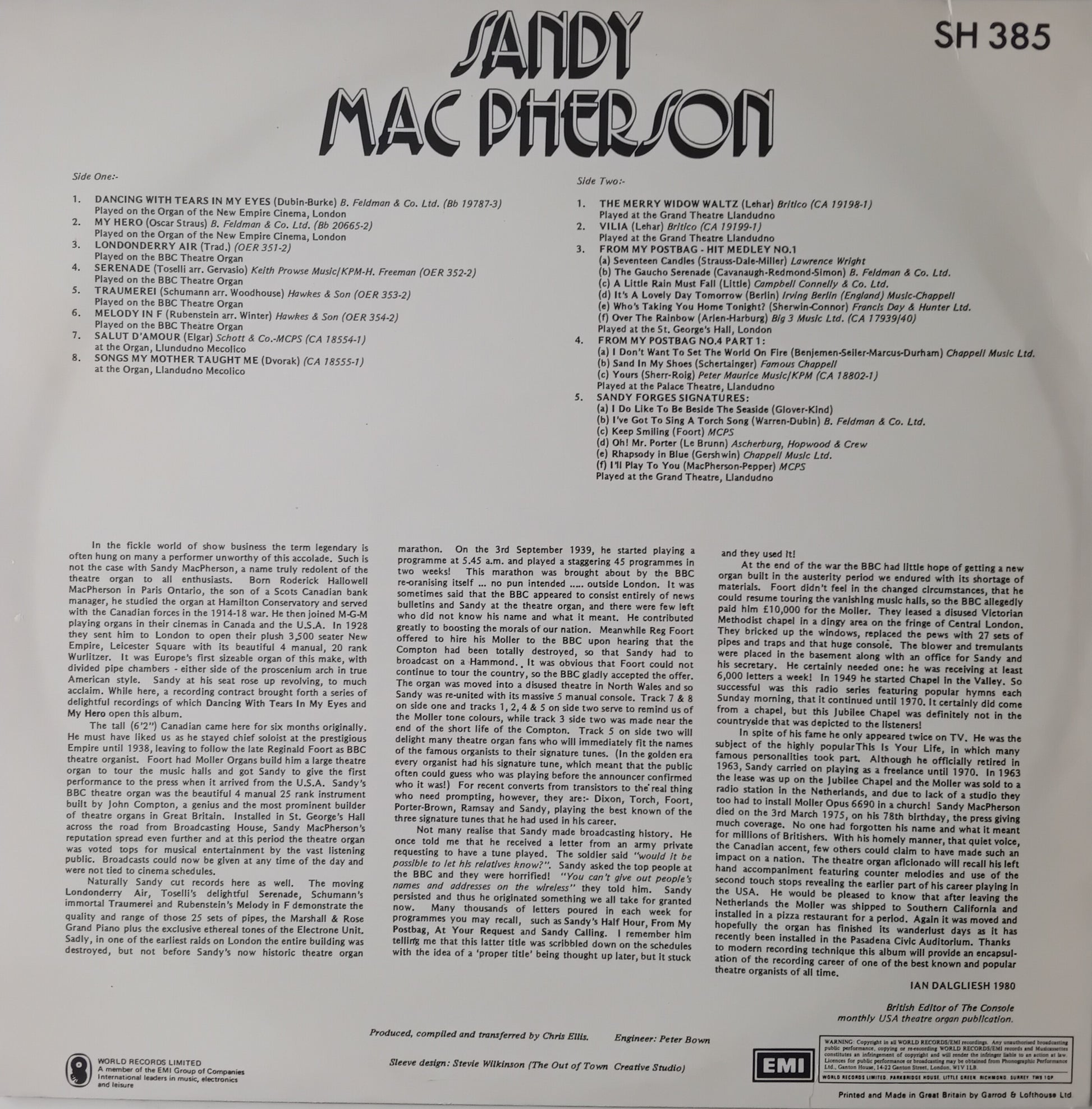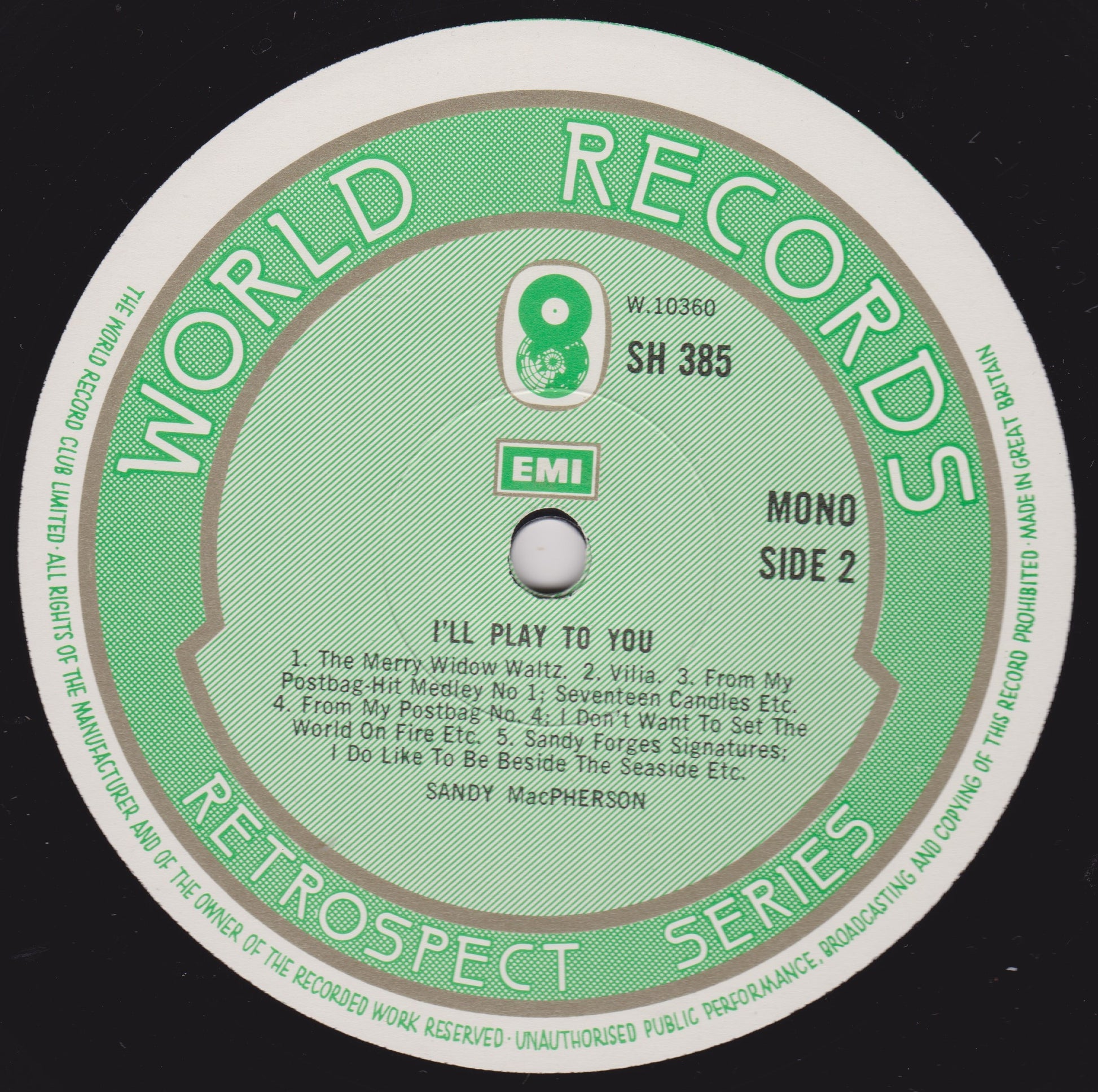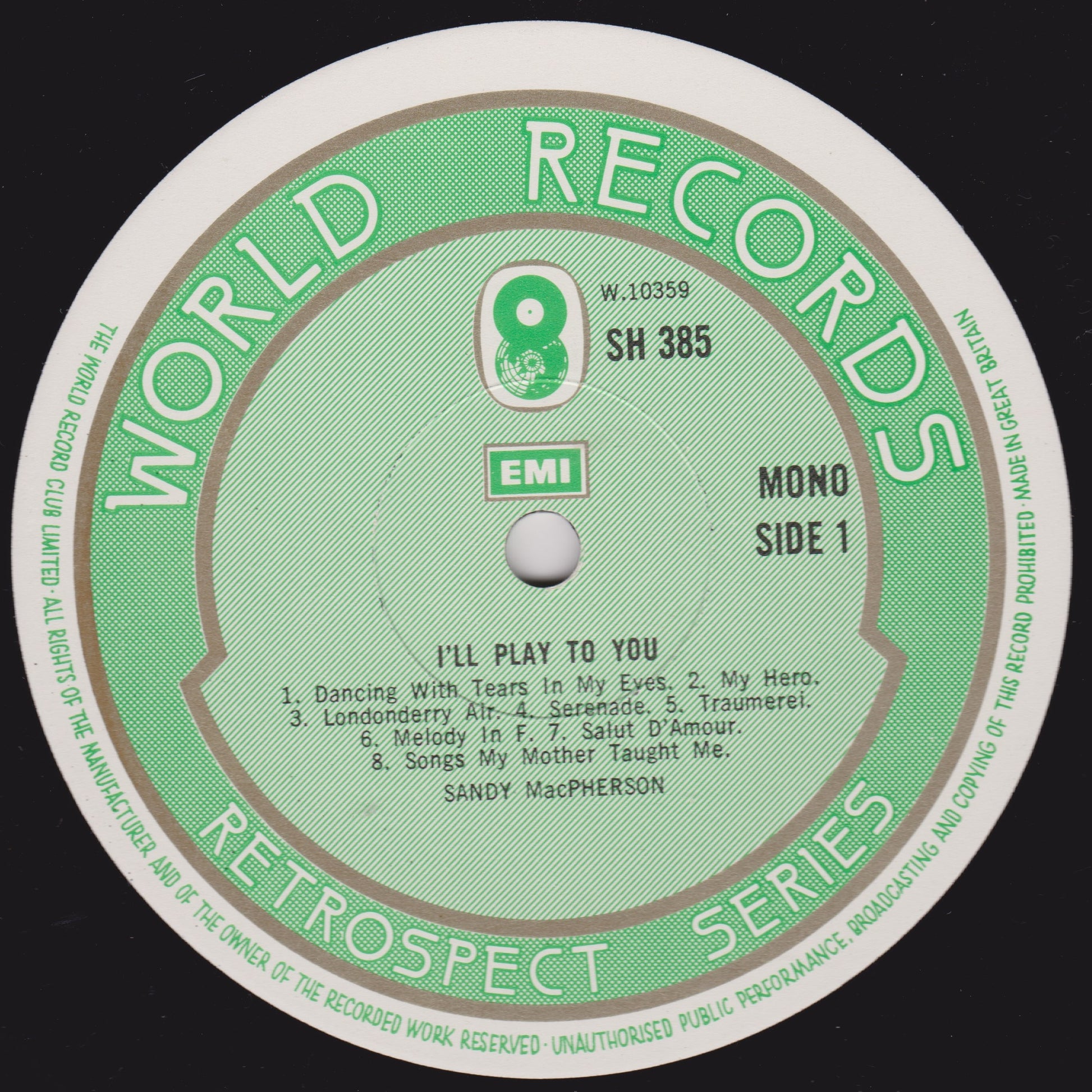 Sandy MacPherson – I'll Play To You (World 1980) 12" vinyl LP VG/VG