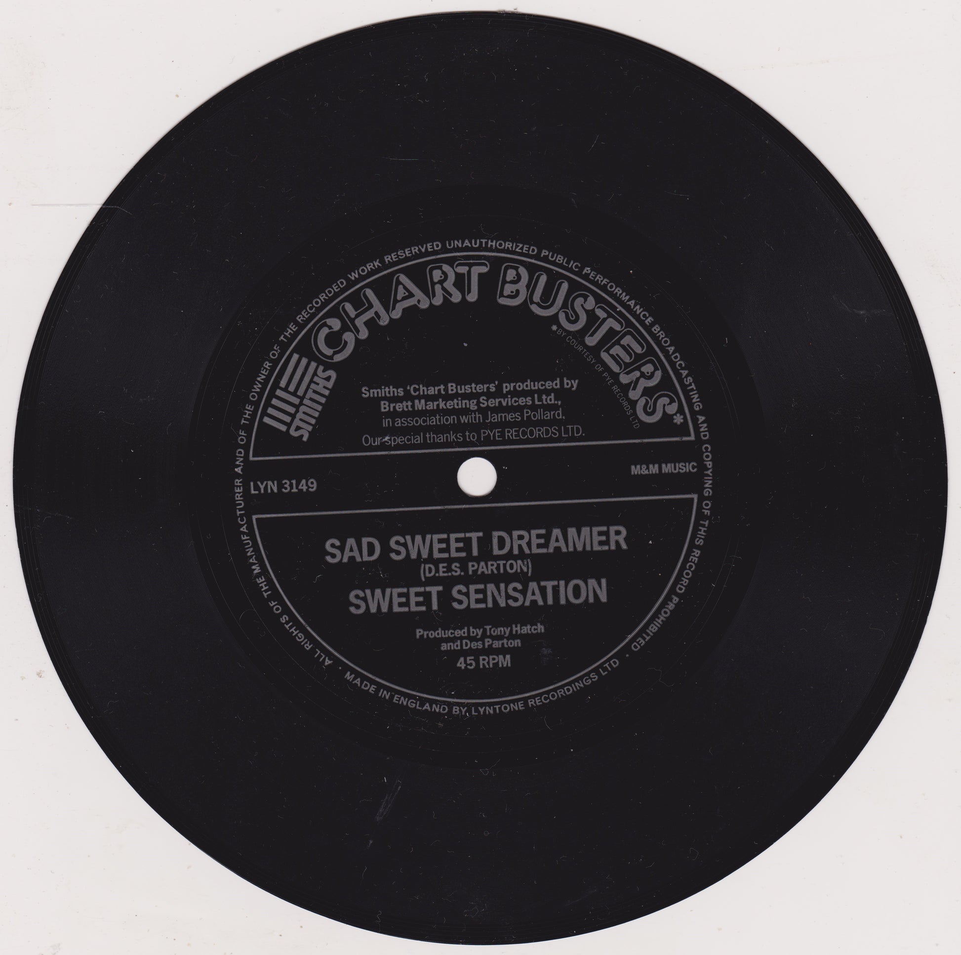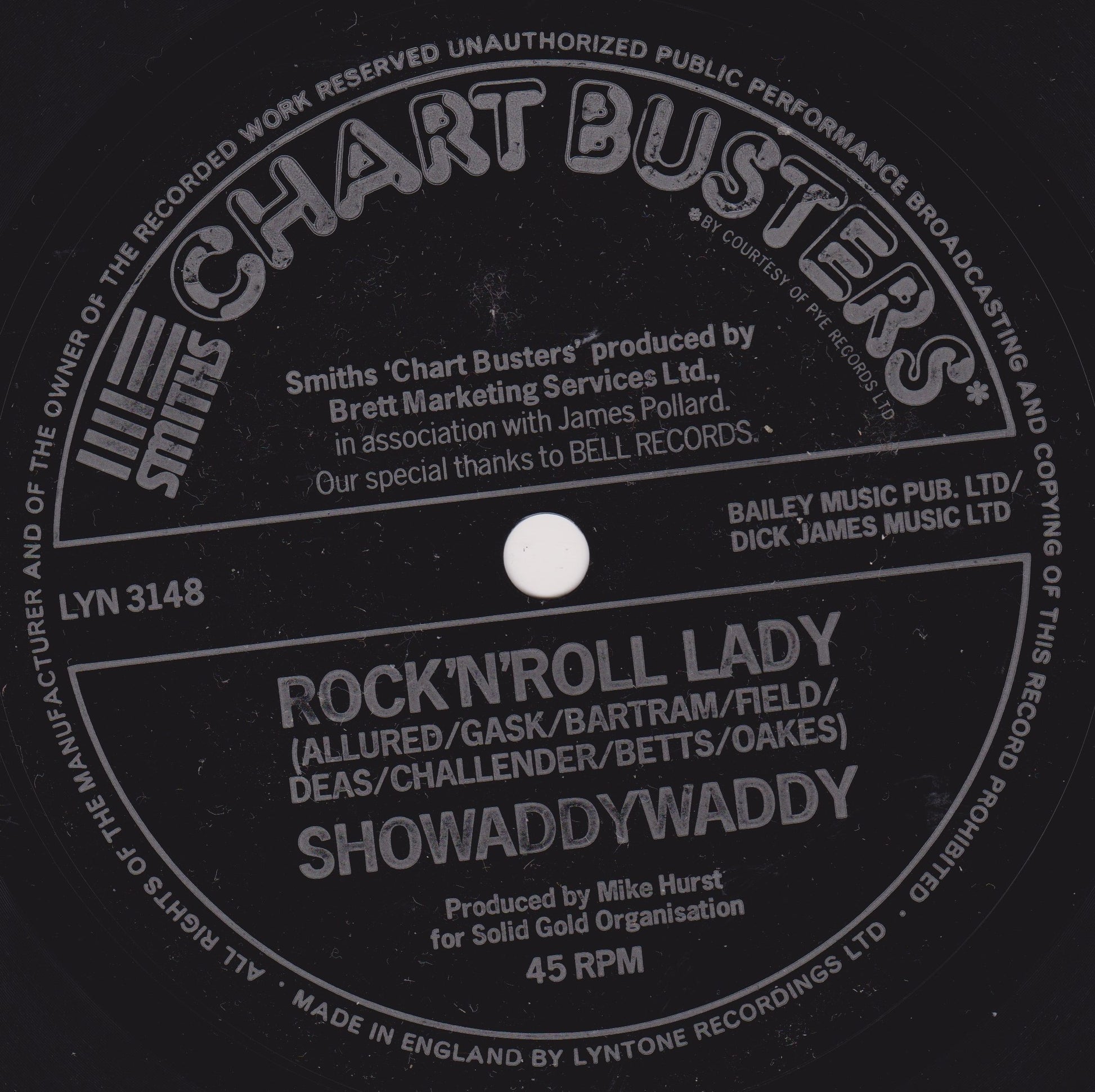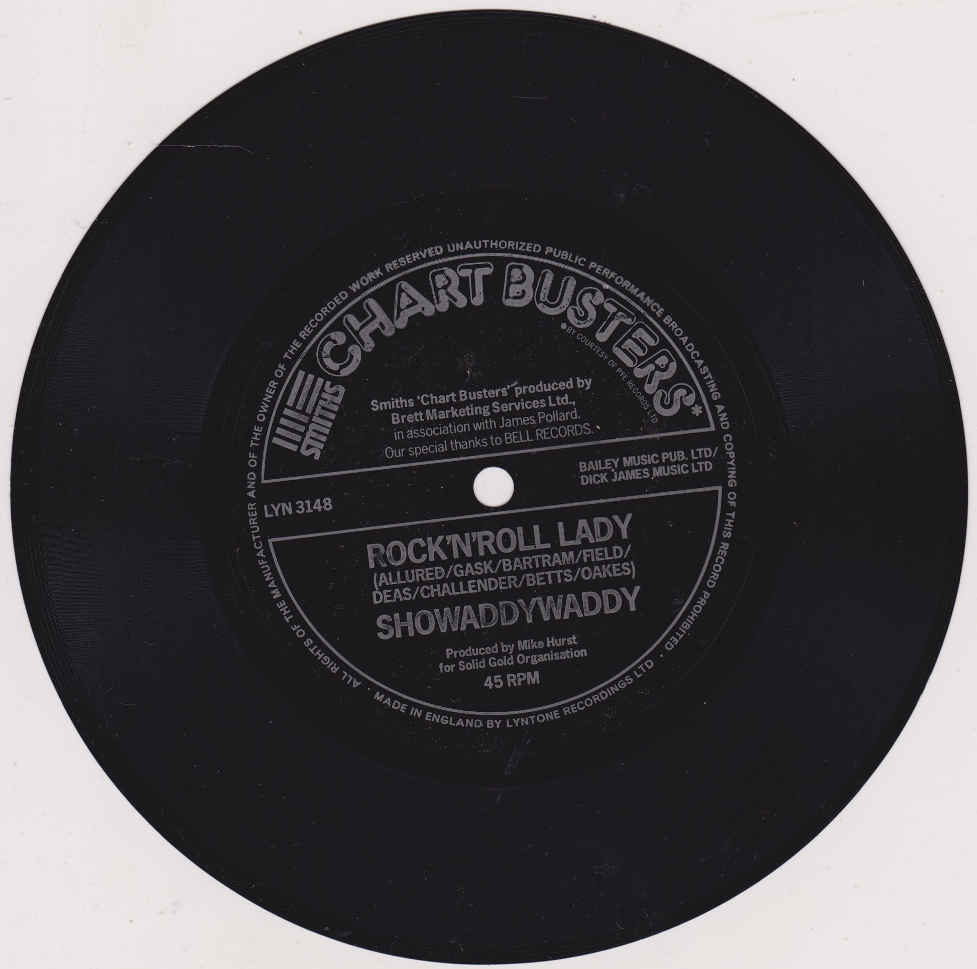 Showaddywaddy / Sweet Sensation – Rock 'N' Roll Lady / Sad Sweet Dreamer (Smiths Crisps 1975) 7" flexi-disc VG