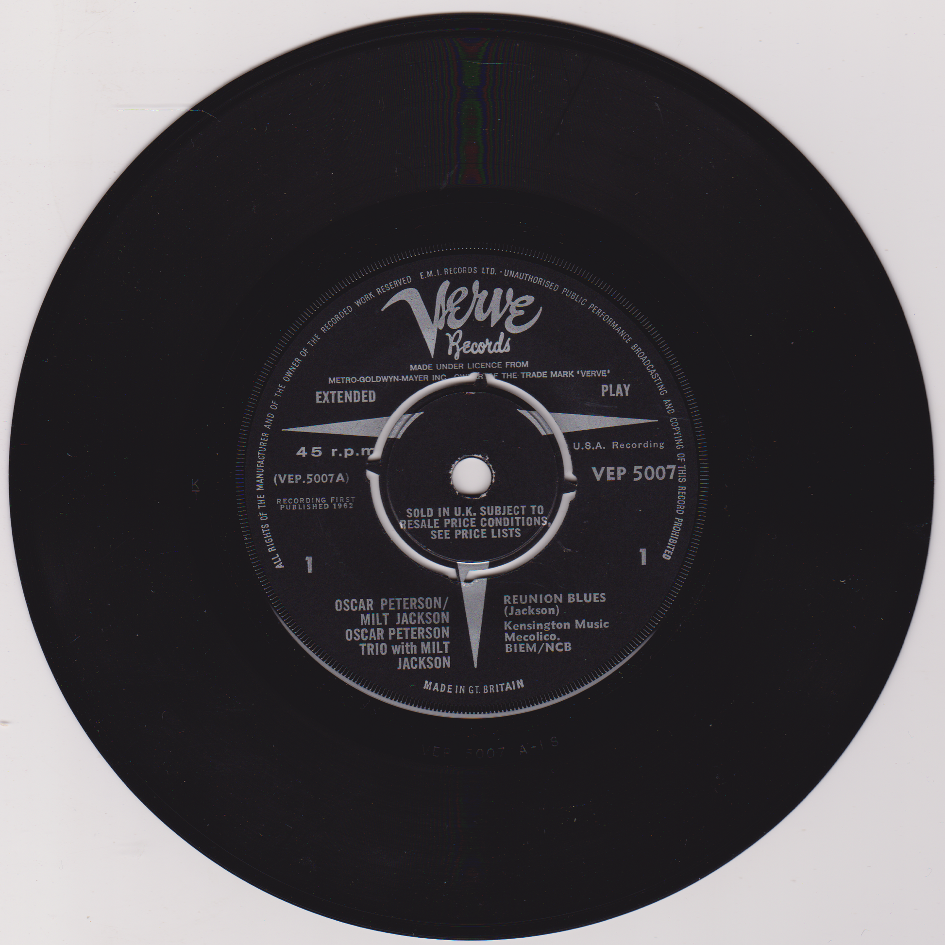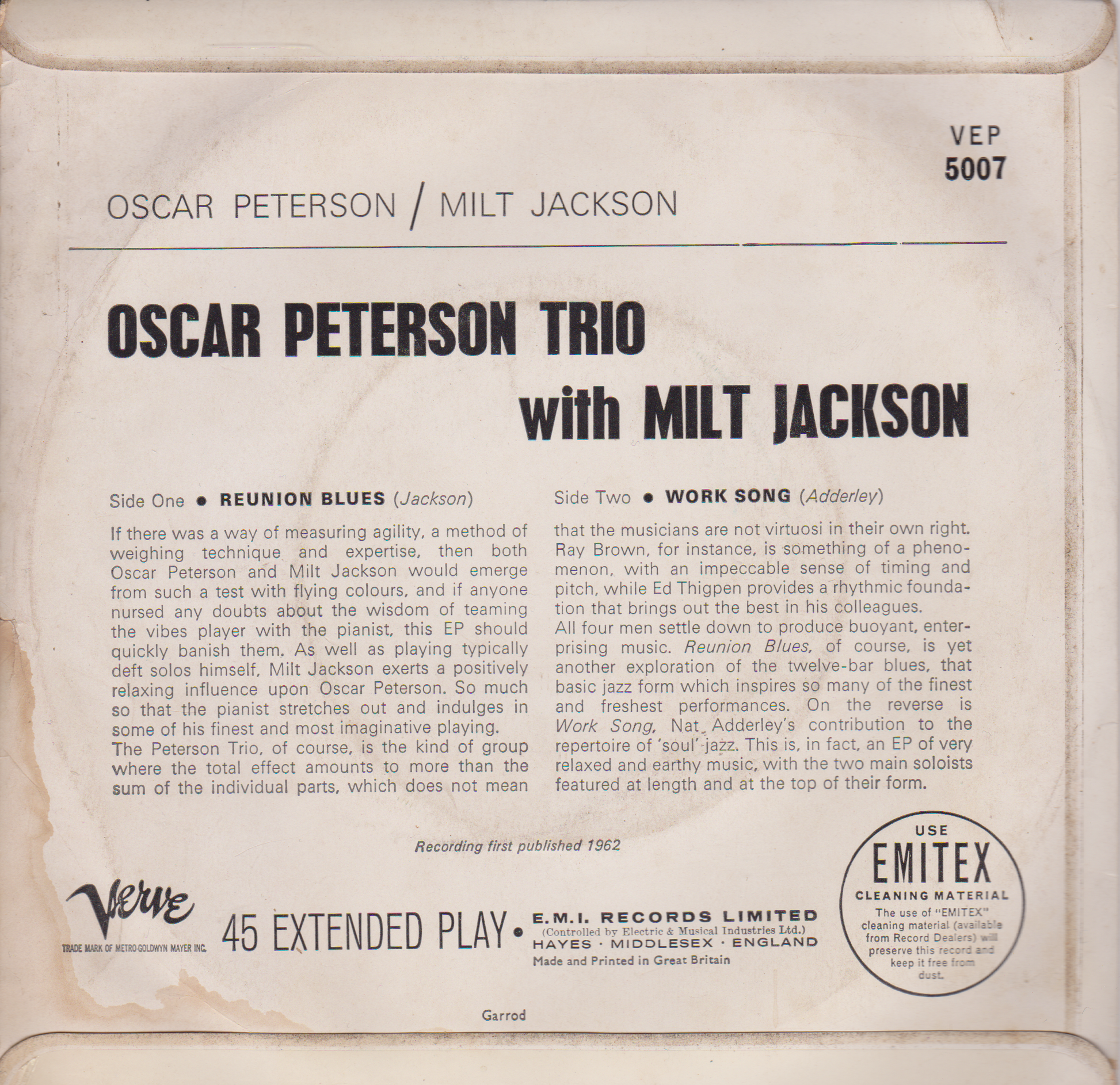 The Oscar Peterson Trio With Milt Jackson – Reunion Blues (Verve 1962) 7" vinyl single VG/VG