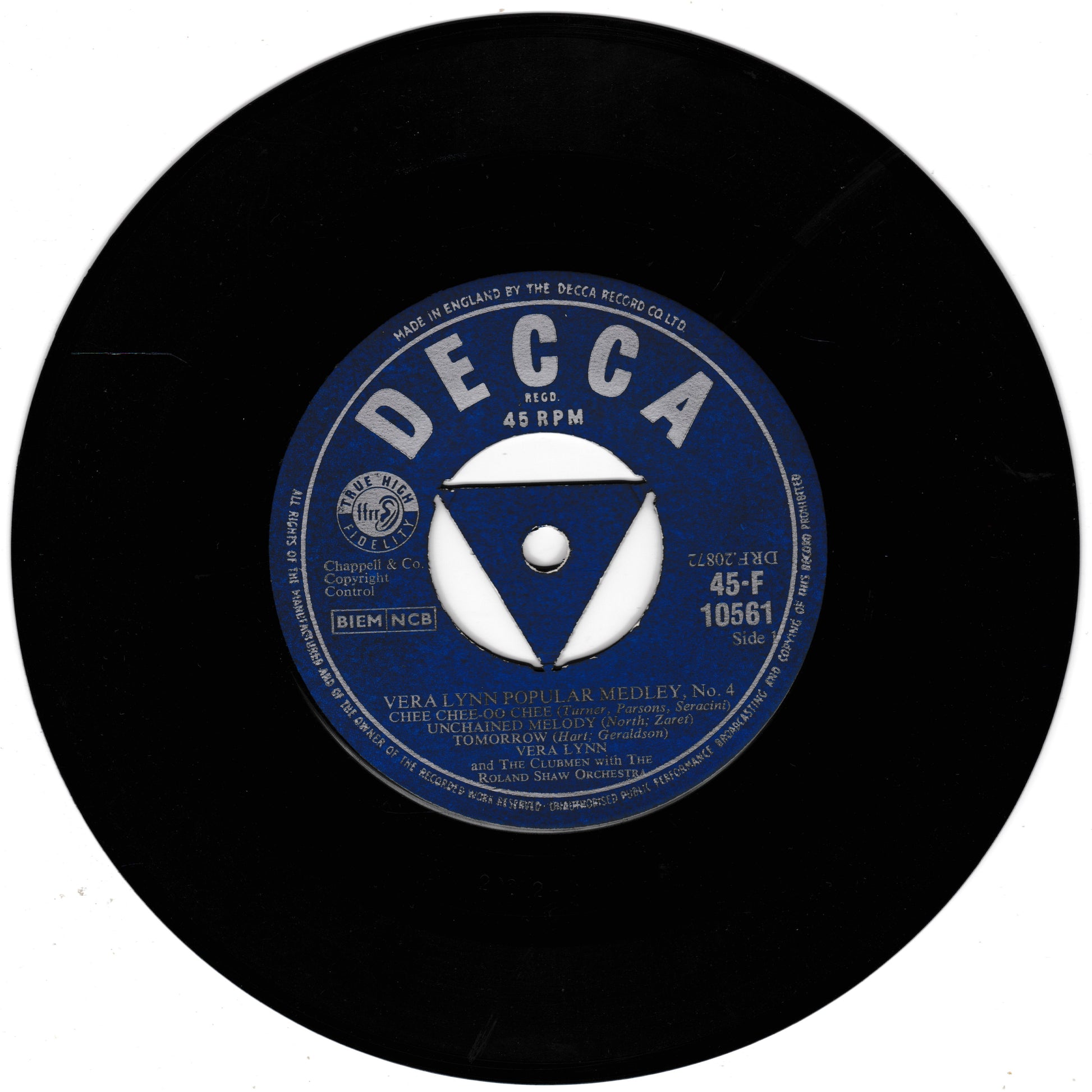 Vera Lynn And The Clubmen – Vera Lynn Popular Medley, No.4 (Decca 1955) 7" vinyl single VG/VG