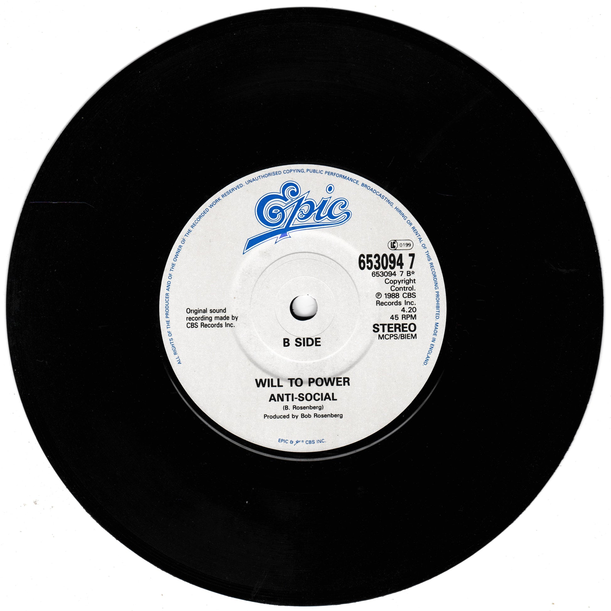 Will To Power - Freebaby (Epic, 1988) 7" vinyl P/S single VG/VG