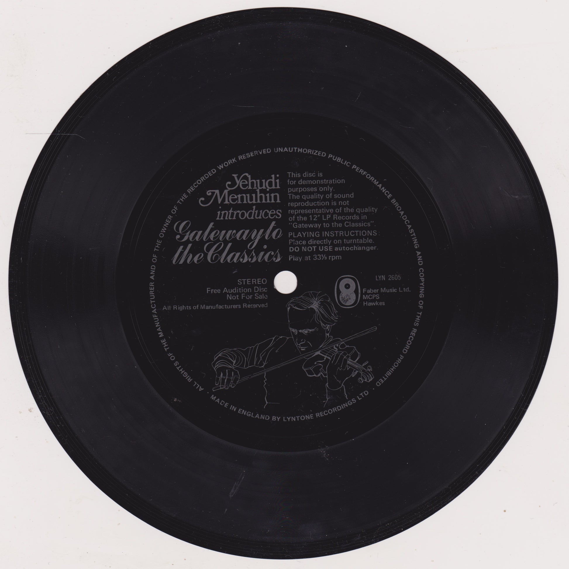 Yehudi Menuhin – Gateway To The Classics 7" flexi disc single VG/VG 33rpm